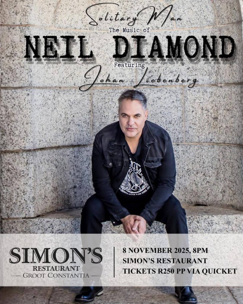 Join us for Solitary Man: The Music of Neil Diamond, featuring the incredible Johan Liebenberg – a performer who’s captivated audiences across South Africa with his powerful voice and heartfelt renditions of Diamond’s greatest hits.
